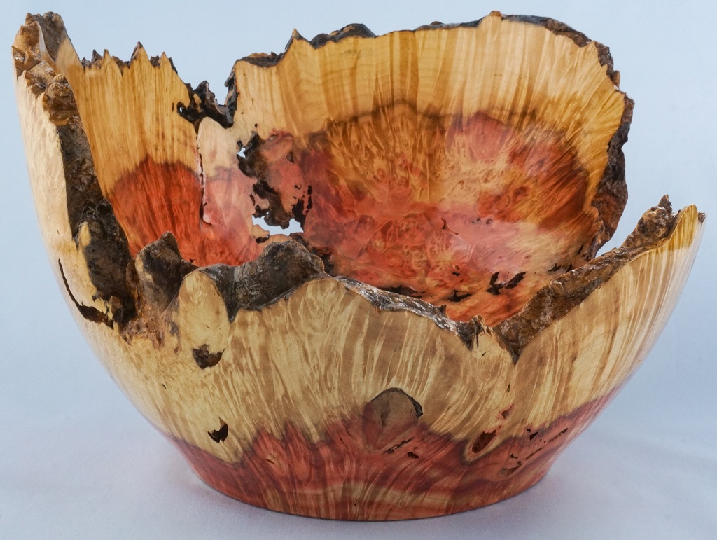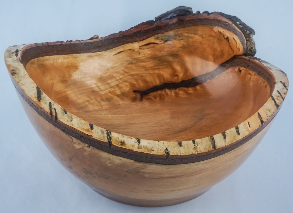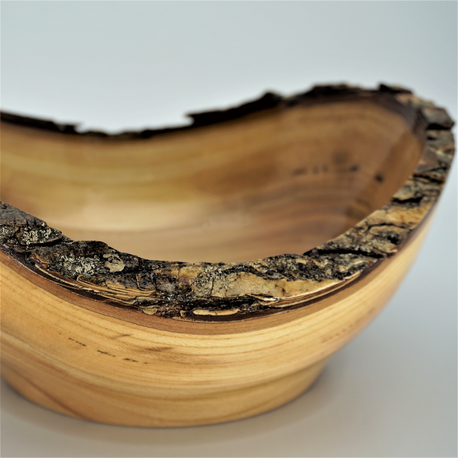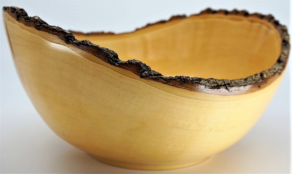 Our natural edge bowls are made using solid wood from native Canadian trees that have either died or fallen. The rim of a natural or live edge bowl follows the unique physical characteristics of the original log. The edge is irregular and has two high and two low points due to the curvature of the log. Natural edge bowls may or may not include bark. These bowls with their graceful edges add interest to any room and are sure to spark a lively conversation with your family and guests. All natural edge bowls are finished with a food grade, highly durable gloss finish and are easy to care for.