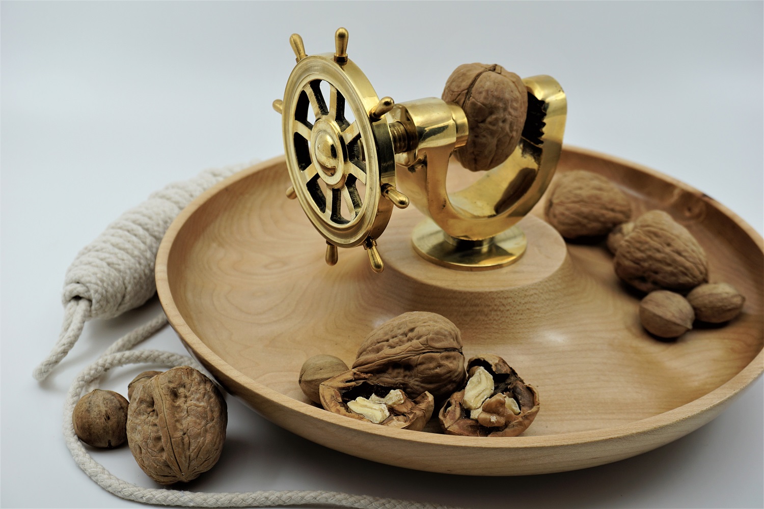 Our nut crackers are made using solid or laminated wood from native Canadian trees that have either died or fallen. The nut cracker mechanism is made from solid brass. All nut crackers are finished with a food grade, highly durable gloss finish and are easy to care for.